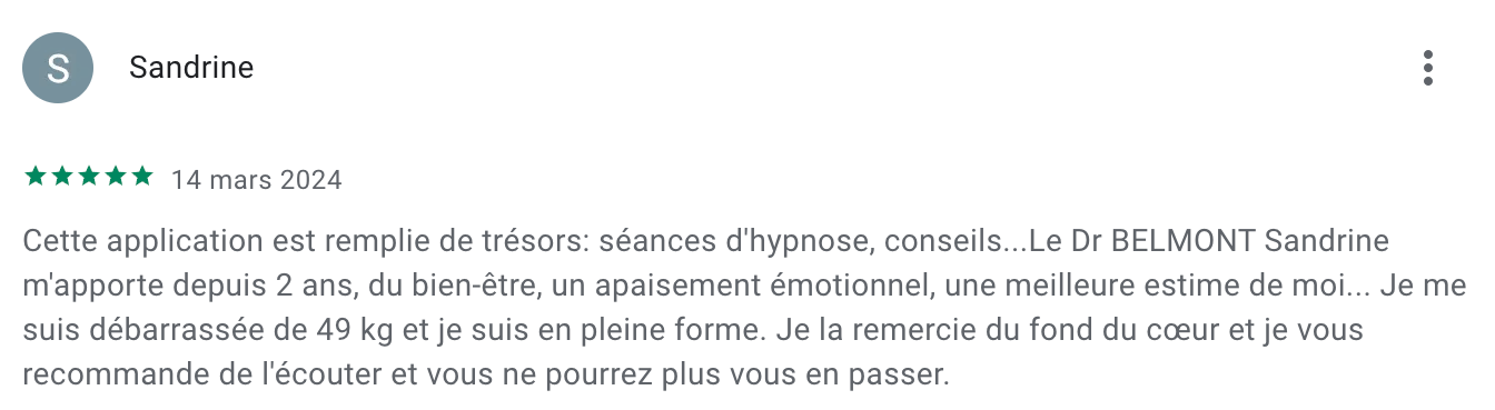 "Formidable application ! Un bien-être retrouvé et bien installé ! Merci beaucoup pour tout !"