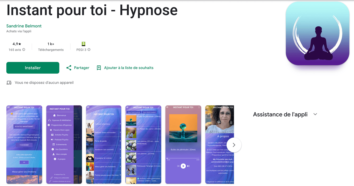 -des séances d'hypnose guidées inédites téléchargeables réservées aux utilisateurs de l'application.